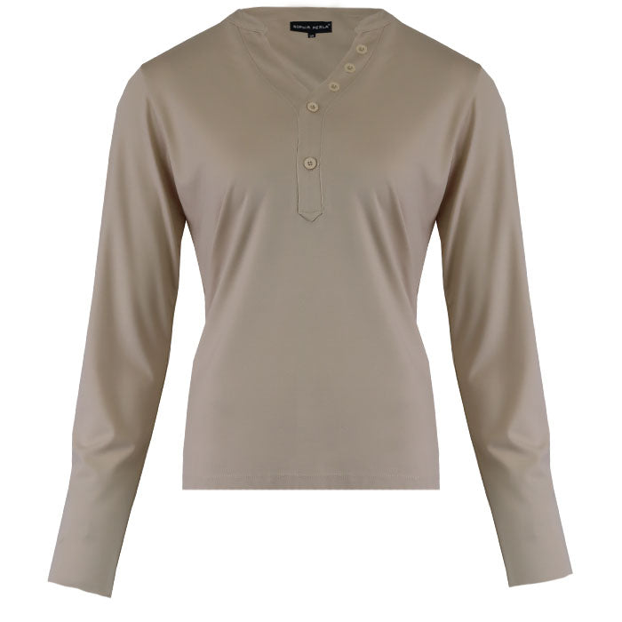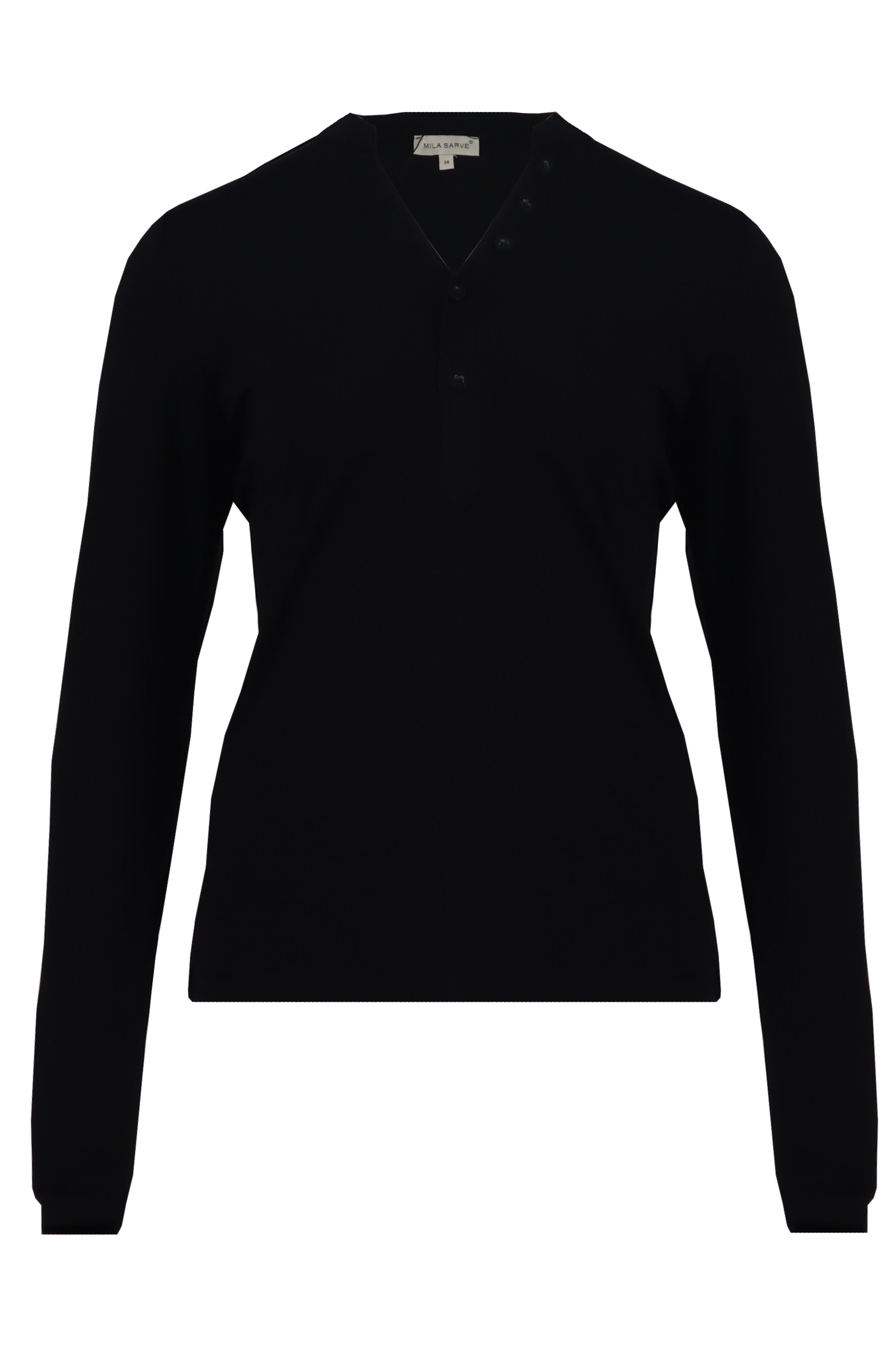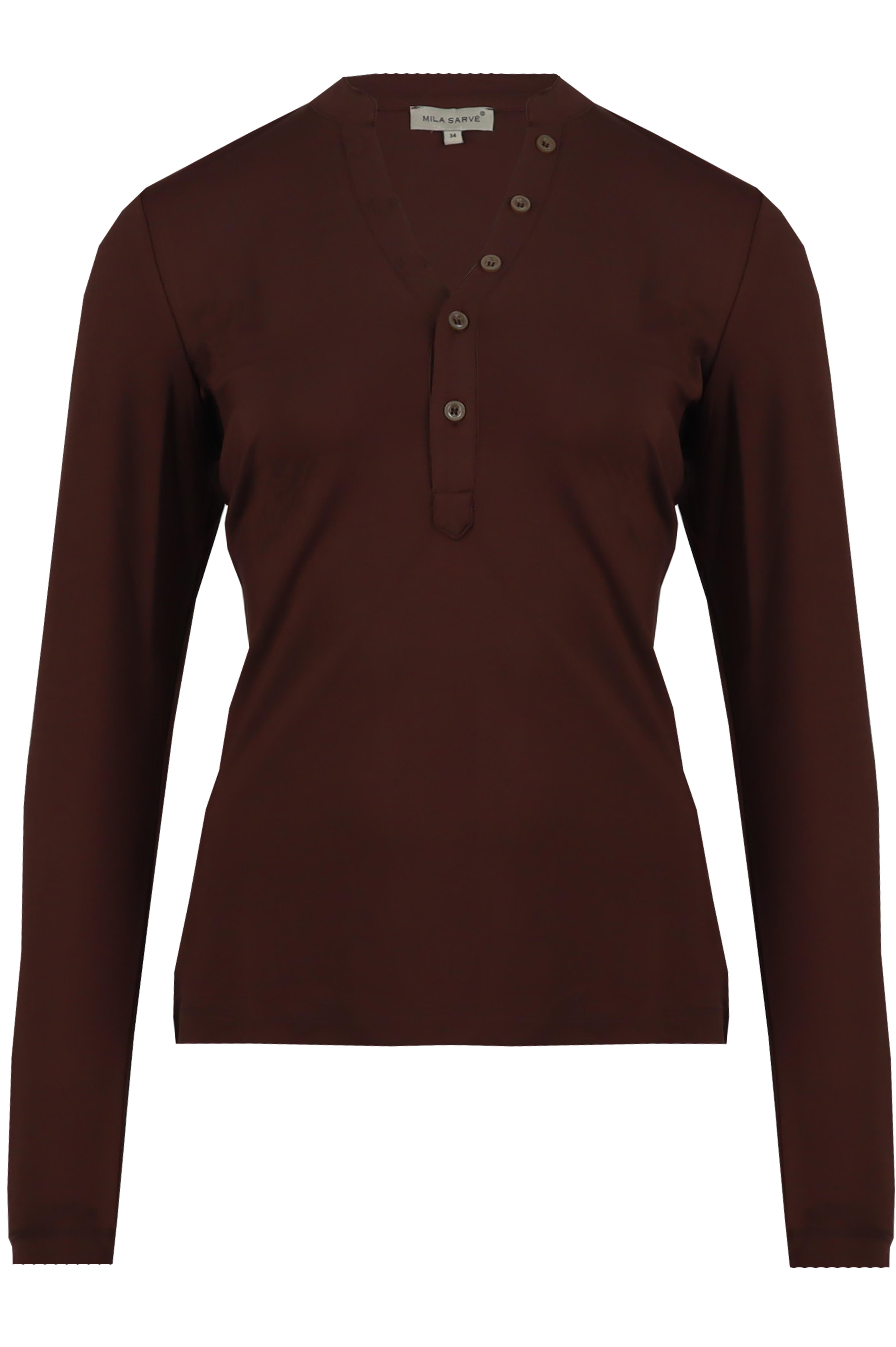 Deze top met lange mouwen is gemaakt van een fijne stof die niet kreukt en de hele dag mooi blijft. De V-hals is subtiel afgewerkt met kleine knoopjes, wat zorgt voor een vrouwelijke en verzorgde uitstraling. Verkrijgbaar in meerdere kleuren.