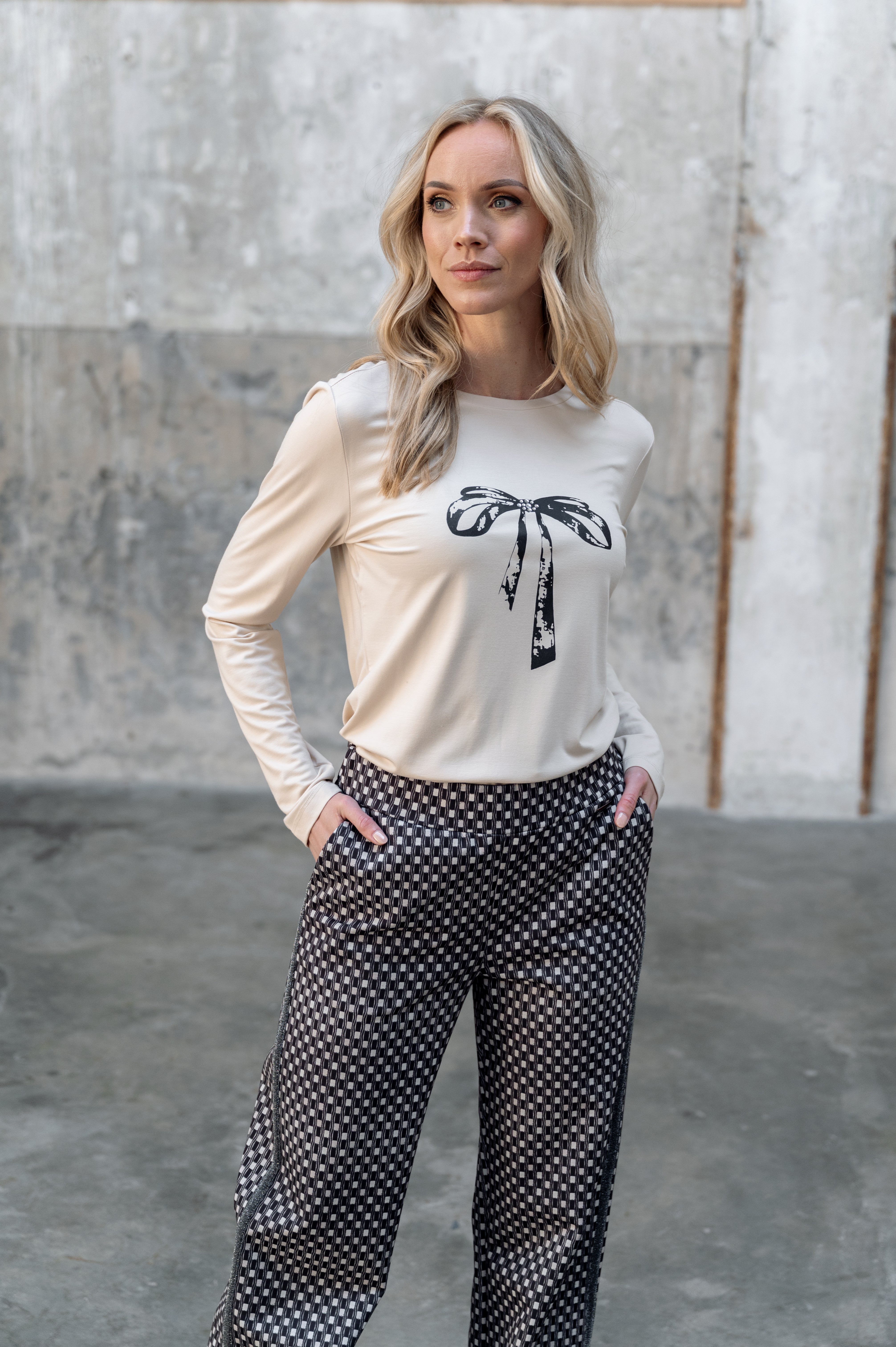 Deze top met lange mouwen is gemaakt van een fijne, soepele stof en heeft een mooie strikopdruk voor een speelse en elegante uitstraling. Een veelzijdig item dat perfect is voor zowel casual als chique looks. Verkrijgbaar in meerdere kleuren.