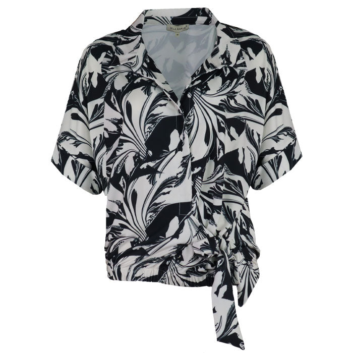 Deze blouse is gemaakt van comfortabel travel materiaal en heeft een sierlijk strikdetail aan de onderkant. De elastieken band zorgt voor een elegante, blousende pasvorm. Verkrijgbaar in meerdere kleuren.