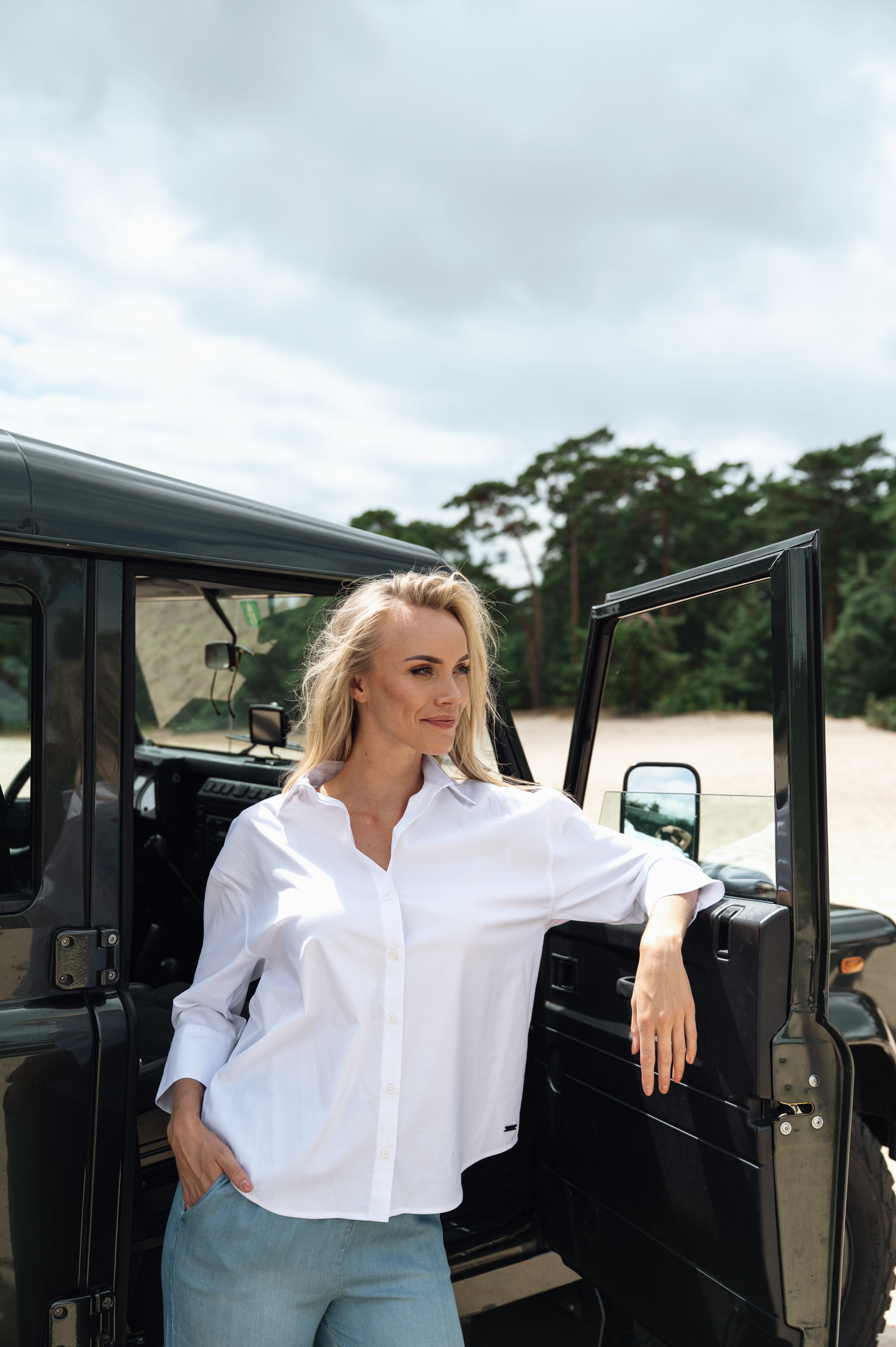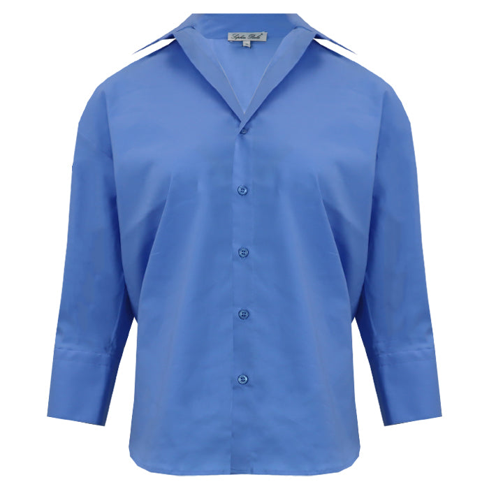 Deze blouse heeft een klassieke kraag en driekwart mouwen met verfijnde knoopjes. Een stijlvol en tijdloos item dat moeiteloos te combineren is. Verkrijgbaar in meerdere kleuren.