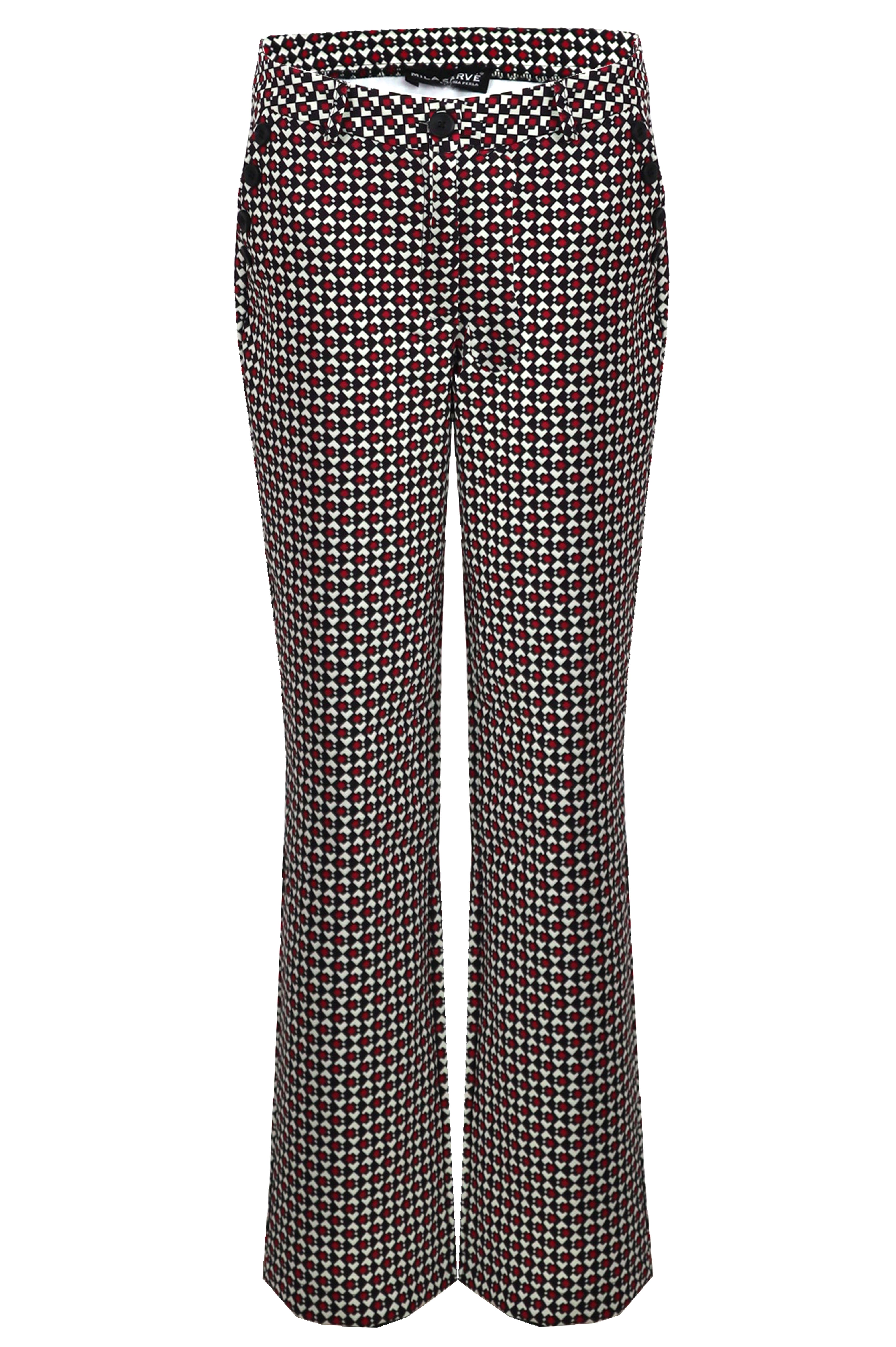 Broek Lario is een hoog model voor een flatterende pasvorm. De steekzakken zijn voorzien van sierknopen voor een stijlvolle touch. Afgewerkt met een klassieke knoopsluiting en verkrijgbaar in meerdere prints.