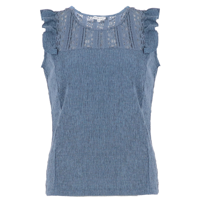 This top has ruffles and is made of a softly falling fabric, which ensures a feminine look. It is a perfect match with the Bella pants for a comfortable and elegant look. Available in multiple colors.