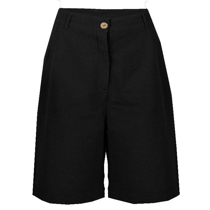 Short Laura has a higher waist and wide legs and offers both comfort and style. The shorts close with a button and zipper and are equipped with handy side pockets. Perfect for a casual look with a modern twist! Available in multiple colors.