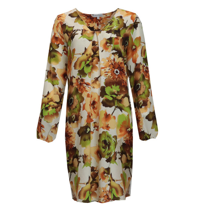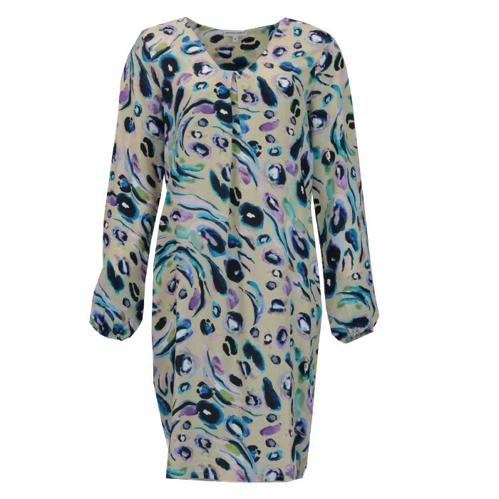 The Raquel dress has a V-neck and long sleeves for an elegant and timeless look. The design ensures a refined and comfortable fit. Available in multiple prints.