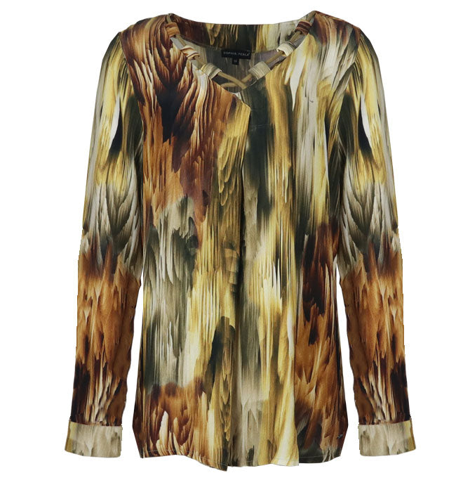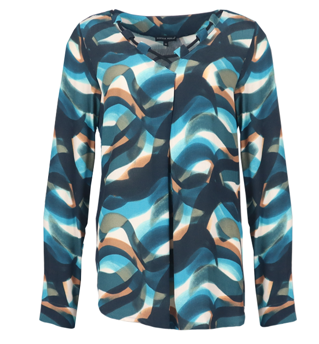 The Sharon blouse has a V-neck and a string detail for a subtle, refined look. Ideal for a casual yet elegant look.